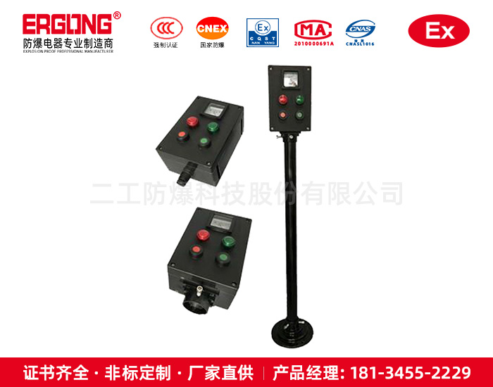 二工防爆,專業生產防爆電器、防爆燈具、防爆管件、防爆儀器儀表、不銹鋼防爆電器、防爆防腐電器、粉塵防爆電器和防水防塵防腐電器及燈具、防爆風機、防爆空調、移動照明等產品、銷售及技術服務為一體的企業。